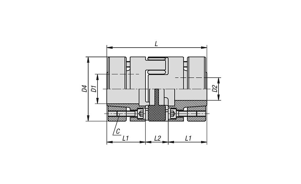 Zur Montage werden die Naben der Elastomer-Klauenkupplung auf die Wellen geschoben. Bei richtiger axialer Position die Klemmschrauben mittels Drehmomentschlüssel auf das in der Tabelle angegebene Anzugsmoment anziehen. Das Abstandsmaß (L2) sollte eingehalten werden, um den Versatzausgleich der Kupplung und die Lebensdauer des Zahnkranzes zu erhöhen.