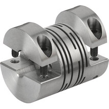 Spielfreie, drehsteife, biegeelastische und wartungsfreie Ganzmetallkupplung zur Übertragung von winkelsynchronen Drehbewegungen. Die innovative Schlitzstruktur ermöglicht eine sehr gute axiale, radiale und winkelige Flexibilität bei geringen Rückstellkräften. Für Servomotoren bestens geeignet. Mit abnehmbaren Klemmnaben zur Wellenbefestigung.