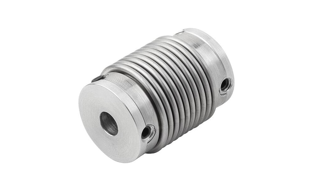 Spielfreie Miniatur-Metallbalgkupplungen mit hoher Verdrehsteifigkeit. Der Metallbalg gleicht axialen, radialen und winkeligen Wellenversatz bei geringen Rückstellkräften aus. Mit Gewindestift zur Wellenbefestigung.