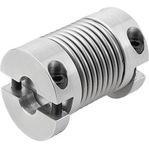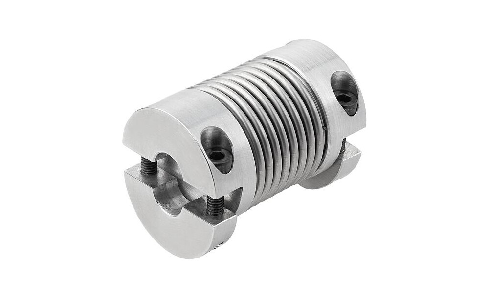Spielfreie Miniatur-Metallbalgkupplungen mit hoher Verdrehsteifigkeit. Der Metallbalg gleicht axialen, radialen und winkeligen Wellenversatz bei geringen Rückstellkräften aus. Mit abnehmbaren Klemmnaben zur Wellenbefestigung.