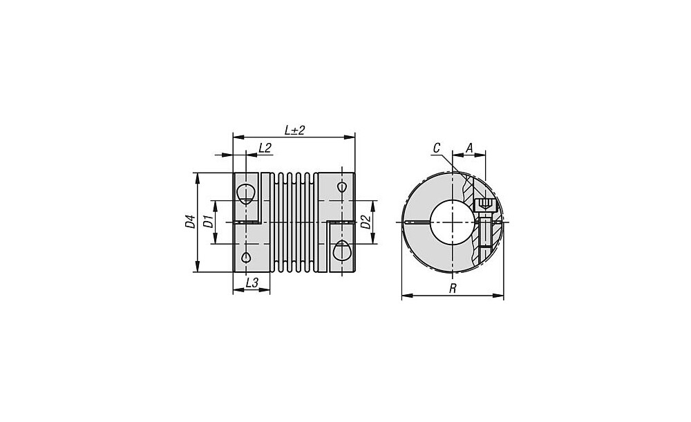 METALLBALGKUPPLUNG MIT RADIALER KLEMMNABE GR.18, D1=24, D2=24, L=63, EDELSTAHL, KOMP:EDELSTAHL, D4=45