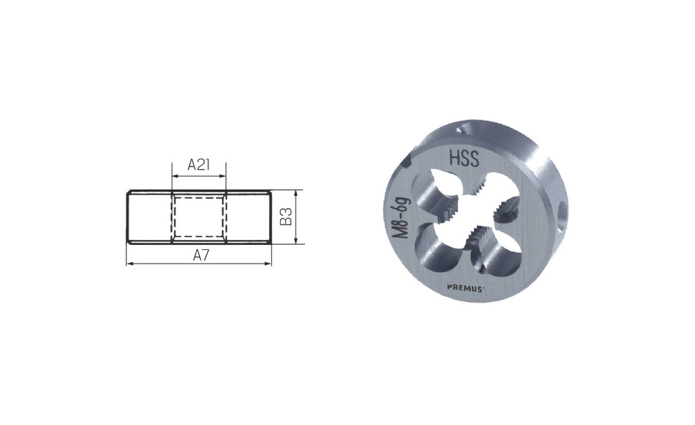 Für Hand- und Maschinengebrauch, zur Bearbeitung von Stahl bis ca. 800 N/mm² sowie unterschiedlichster Werkstoffe. Der Schälanschnitt bewirkt ein freies Abfließen der Späne nach vorne und eine Verringerung des Schnittmomentes. Spänestauungen in den Spanlöchern werden vermieden. Dadurch wird eine verbesserte Oberflächengüte bei den geschnittenen Gewinden und eine höhere Standzeit erreicht. Alle auf Maschinen eingesetzte Schneideisen müssen daher mit Schälanschnitt ausgestattet sein.