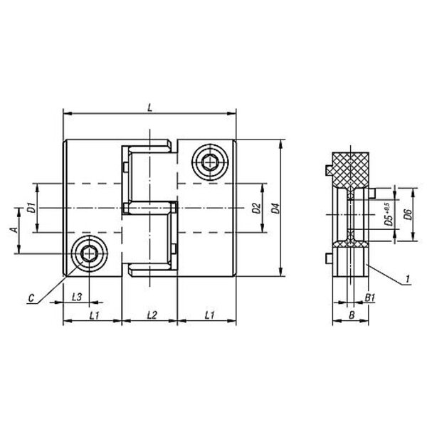 ELASTOMER-KLAUENKUPPLUNG MIT RADIALER KLEMMNABE GR.30 L=58 ALUMINIUM, KOMP:PO...