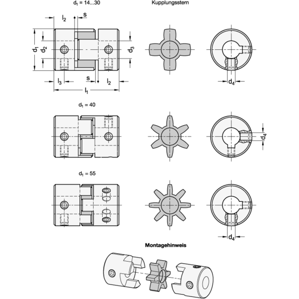 Durch die Wahl zwischen drei unterschiedlich harten Kupplungssternen lassen sich die Kupplungseigenschaften an die jeweiligen Anforderungen optimal anpassen. Durch die Klemmung mittels Gewindestifte und die einfache Steckmontage sind Klauenkupplungen sehr montagefreundlich.