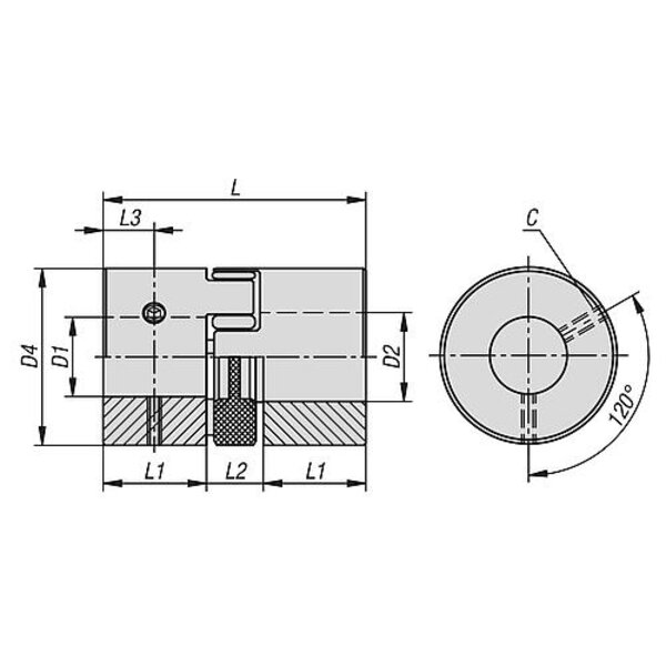 ELASTOMER-KLAUENKUPPLUNG KLEMMUNG MIT GEWINDESTIFT GR.19, D1=12, D2=14, L=66,...
