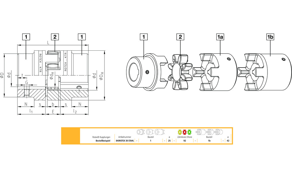 ROTEX 38 GG Nabe 1.0 Ø42H7 Nut DIN 6885/1-JS9 >