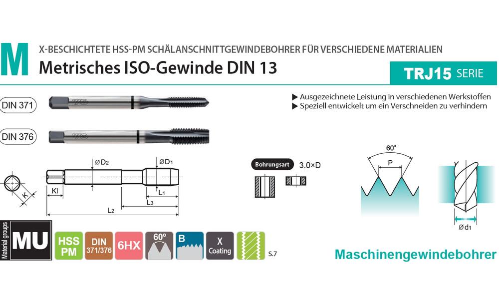 YG1 HSS-PM PRIME DIN371 Gewindebohrer M3X0.5 6HX 56.0L