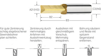 Gewindebohrer-Ausbohrer PREMUS, VHM, TiN 3-Schneiden