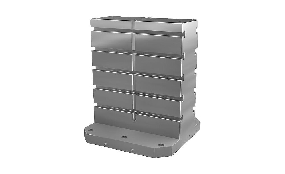 Aufspannwürfel mit T-Nuten werden zum Aufbau von modularen Vorrichtungen auf horizontalen Maschinen eingesetzt.