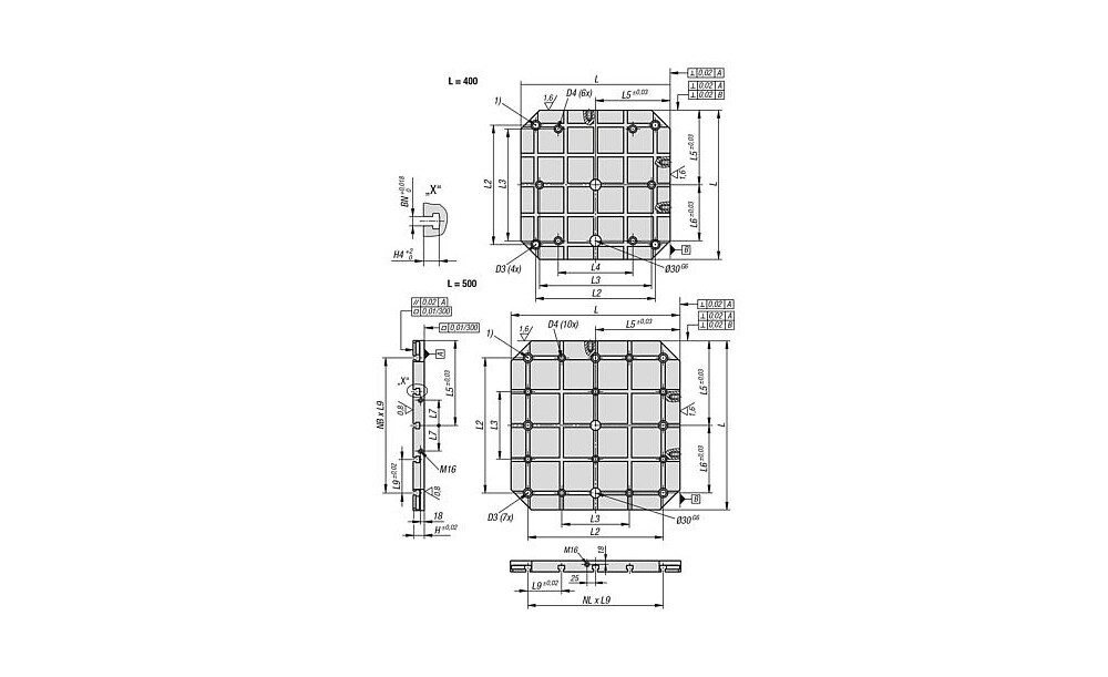 Die genauen Nutenabstände in Längs- und Querrichtung garantieren eine sehr hohe Wiederholgenauigkeit der Aufspannungen. Die Paletten sind abgestimmt auf Maschinentischen für Werkzeugmaschinen nach DIN 55201 und Maschinentischen nach JIS6337-1980.