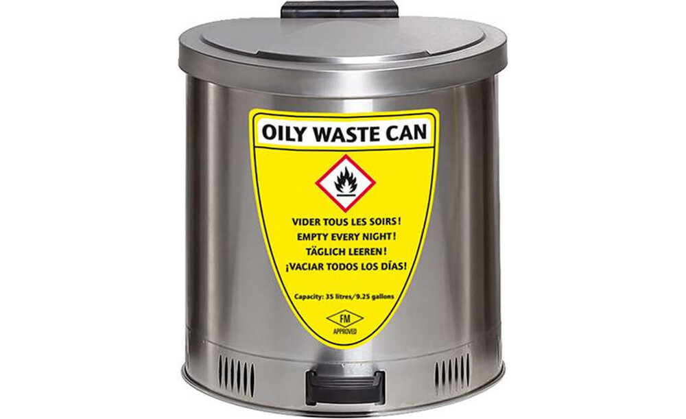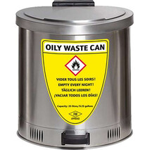 -Entsorgungsbehälter, aus Edelstahl Diese Entsorgungsbehälter werden zum sicheren Entsorgen von lösemittelhaltigen Putzlappen und sonstigen Abfällen benutzt.
