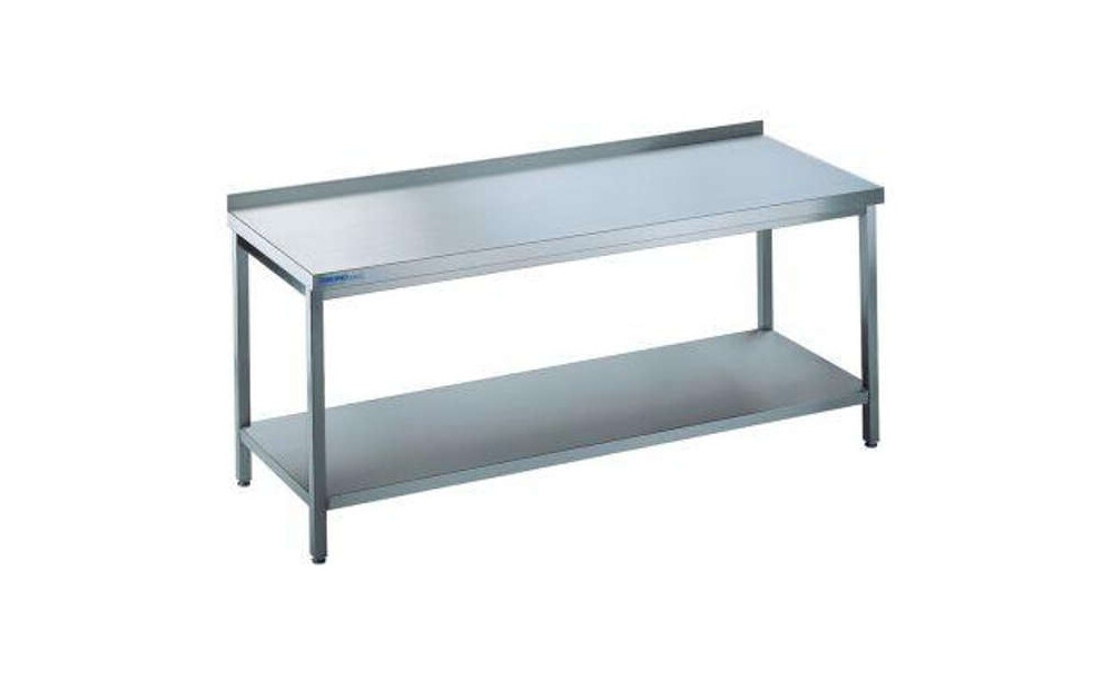-Edelstahl-Arbeitstisch mit fest eingeschweißtem Zwischenboden Diese Arbeitstische sind rostfrei, robust und pflegeleicht.