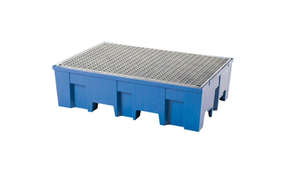 Auffangwanne ASECOS, PE 2-Fass m. verz. Rost 865x1245
