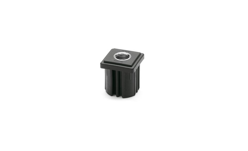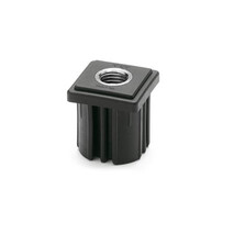 Einsteckbuchsen GN 348 ermöglichen die Montage von Schrauben in Vierkantrohre. Die Buchsen werden dabei über den leicht konisch zulaufenden Einsteckteil im Rohr gehalten.