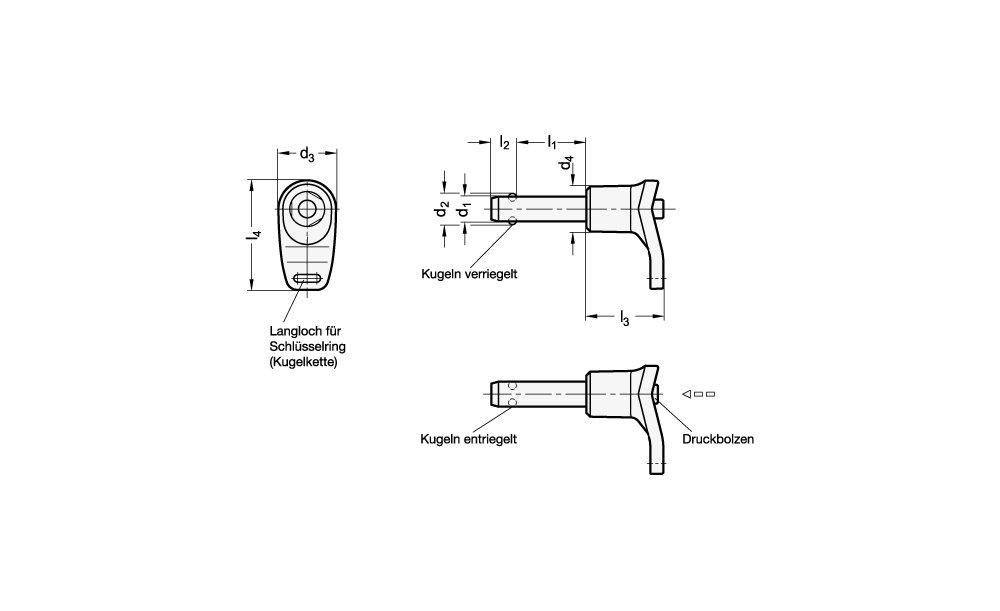 Kugelsperrbolzen, Bolzen Edelstahl 1.4305, L-Griff Kunststoff