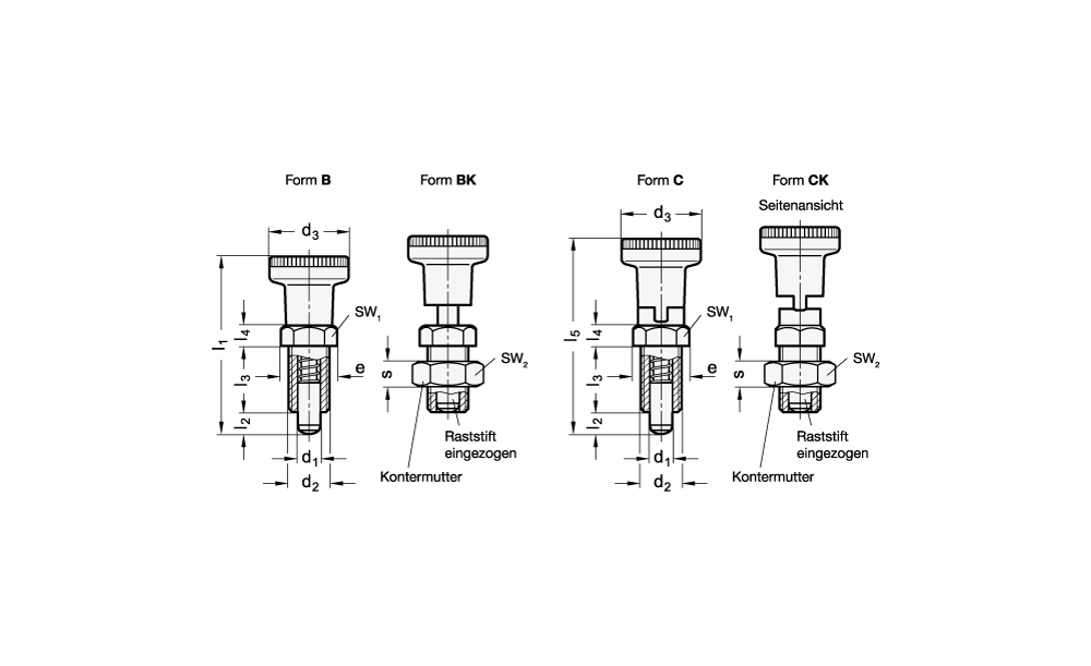 - Form: CK - mit Rastsperre, mit Kontermutter