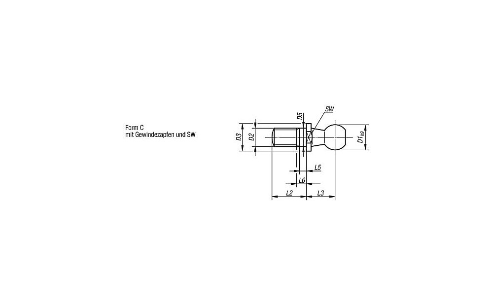 KUGELZAPFEN DIN71803 FÜR WINKELGELENKE, D1=13, FORM:C MIT GEWINDEZAPFEN M08, ...