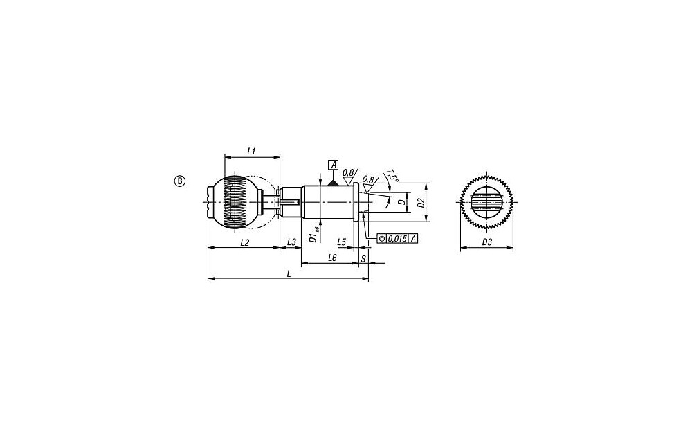 PRÄZISIONS-ARRETIERBOLZEN, FORM:B ARRETIERBAR MIT RASTNUT, D=16, STAHL GEHÄRTET UND GESCHLIFFEN,