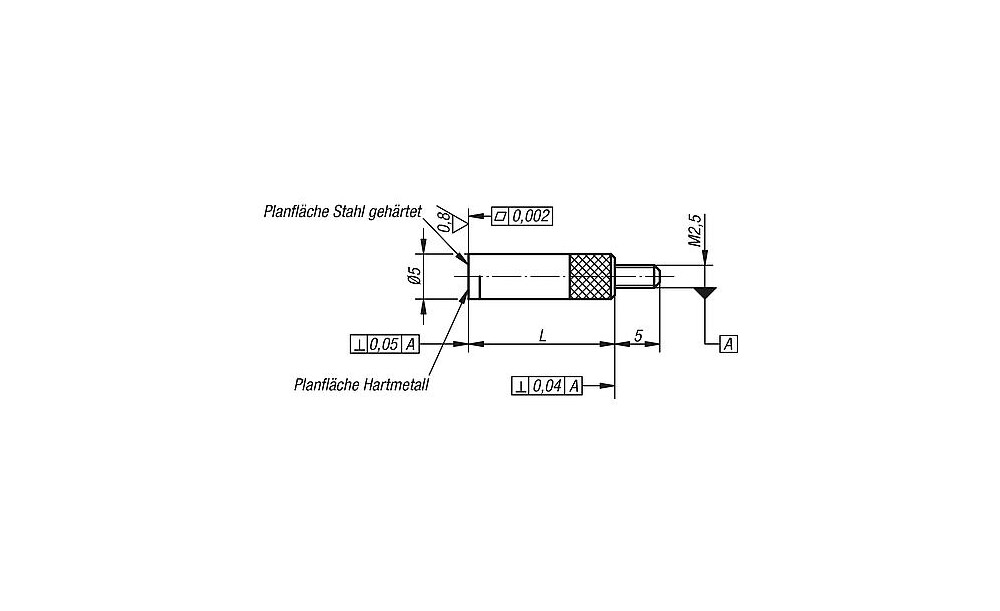 MESSEINSATZ MIT PLANFLÄCHE L=8 STAHL, KOMP:STAHL