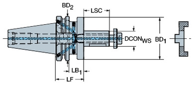 - Form JD/JF: zentrale Kühlmittelzufuhr und wiederverschließbare Kühlmittelkanäle am Bund (BT40 & BT50)