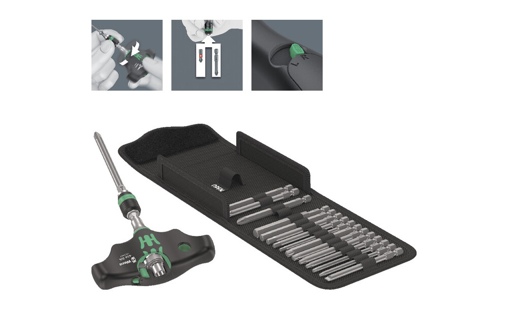 - Umschaltknarre feinverzahnt (80 Zähne / 4,5° Rückholwinkel), vereinfacht und beschleunigt das Schrauben ohne mühsames Neuansetzen