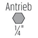 - für den Einsatz mit Schlagschraubern sowie für alle Schrauber/Schlagbohrschrauber mit 3-Backen-Bohrfutter geeignet
