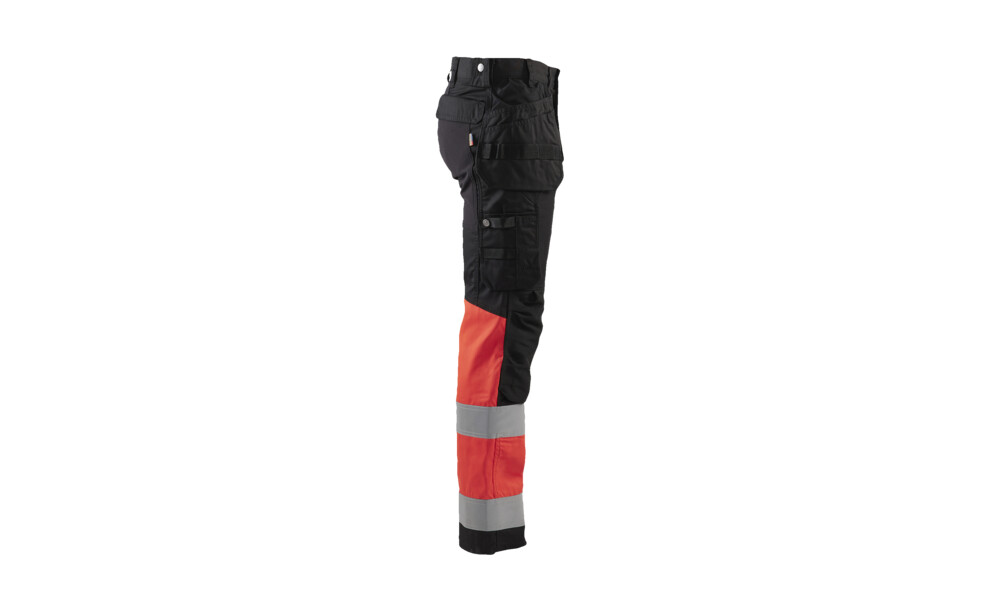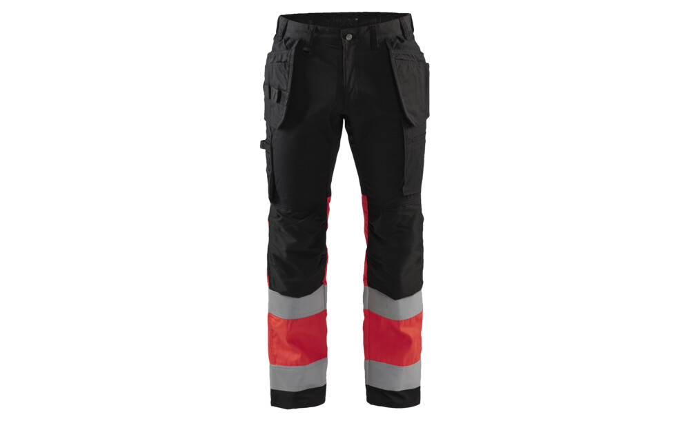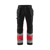 HighVis Arbeitshose mit Stretch Schwarz/HighVis Rot D84