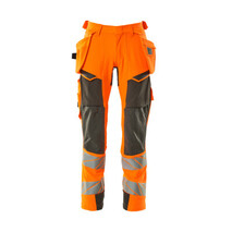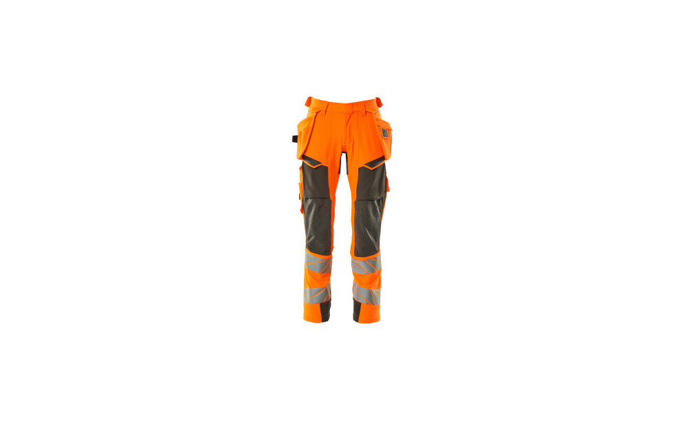 Fluoreszierend mit Reflexen. Hat ein wasserabweisendes Finish. Zweifarbig. Vier-Wege-Stretchstoff mit geringem Gewicht und guter Strapazierfähigkeit. Zweifache Kappnähte an den Beinen und im Schritt. Niedrige Taille. Verdeckter Knopfverschluss. Hosenbeine sind ergonomisch geformt. Abnehmbare Hängetaschen. Innere Hängetasche mit Druckknopfverschluss. Hängetasche mit gefütterter Handytasche undMagnetverschluss. Hängetaschen mit Kevlar® und CORDURA®-Gewebe Verstärkungen. Gürtelschlaufen. Werkzeugschlaufen an beiden Seiten des Bundes. Hosenschlitz mit Reißverschluss. Vordertaschen. Gesäßtaschen, verstärkt und mit Patte. Beidseitig verdeckte Hammerschlaufen. Knopf (abnehmbar) zum Befestigen eines Messerhalters. Zollstocktasche mit Kevlar®-Verstärkungen. Taschen mit Patte vorne am Oberschenkel. Knietaschen aus CORDURA® Zwei-Wege-Stretchstoff mit Belüftung. Einfache, individuelle Regulierung der Knietaschenhöhe. Schenkeltasche mit gefütterter Handytasche, Magnetverschluss und integriertem ID-Kartenhalter. ID-Kartenhalter ist abnehmbar. Senkrechter Reißverschluss für Belüftung am Oberschenkel hinten. Mit Druckeffekten. Die Schrittlänge kann um 3 cm verlängert werden, indem die rote Naht innen am Beinabschluss entfernt wird. Wir empfehlen den MASCOT® Waterloo, MASCOT® Grant, MASCOT® Likasi und 20118-915 Knieschutz zu diesem Modell. Hi-Vis Gruppe Y. Zertifiziert nach EN ISO 20471 - Kl. 2. Das Produkt ist zertifiziert, dass dieses mit einem Logo von 0,0500 m² versehen werden darf. Dieses zulässige Areal darf nicht überschritten werden. Das Logo auf der Vorder- und Rückseite darf jeweils maximal 50% des gesamten Logoareals betragen, um die Zertifizierung gemäß EN ISO 20471 beizubehalten.