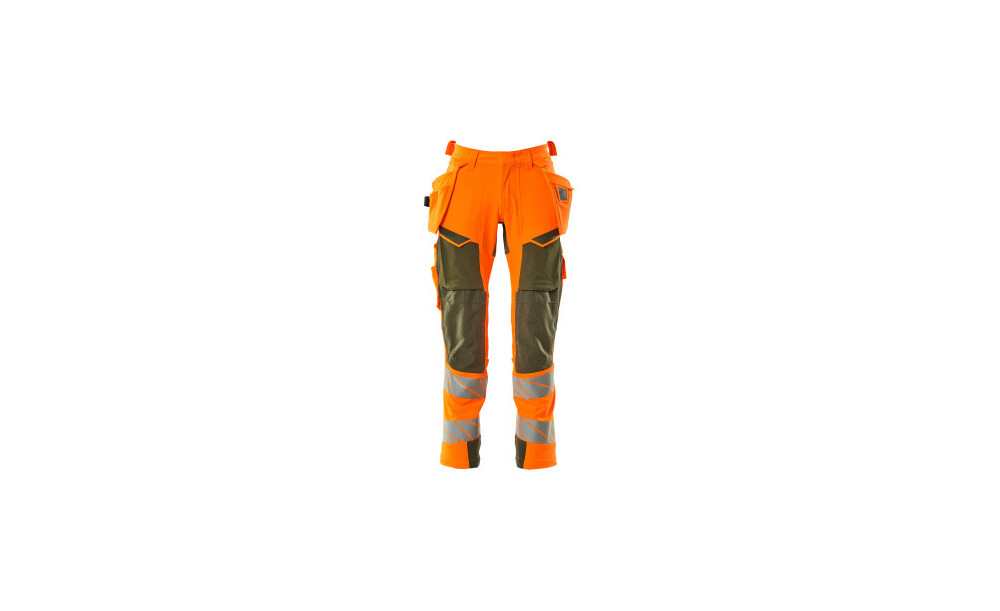 Fluoreszierend mit Reflexen. Hat ein wasserabweisendes Finish. Zweifarbig. Vier-Wege-Stretchstoff mit geringem Gewicht und guter Strapazierfähigkeit. Zweifache Kappnähte an den Beinen und im Schritt. Niedrige Taille. Verdeckter Knopfverschluss. Hosenbeine sind ergonomisch geformt. Abnehmbare Hängetaschen. Innere Hängetasche mit Druckknopfverschluss. Hängetasche mit gefütterter Handytasche undMagnetverschluss. Hängetaschen mit Kevlar® und CORDURA®-Gewebe Verstärkungen. Gürtelschlaufen. Werkzeugschlaufen an beiden Seiten des Bundes. Hosenschlitz mit Reißverschluss. Vordertaschen. Gesäßtaschen, verstärkt und mit Patte. Beidseitig verdeckte Hammerschlaufen. Knopf (abnehmbar) zum Befestigen eines Messerhalters. Zollstocktasche mit Kevlar®-Verstärkungen. Taschen mit Patte vorne am Oberschenkel. Knietaschen aus CORDURA® Zwei-Wege-Stretchstoff mit Belüftung. Einfache, individuelle Regulierung der Knietaschenhöhe. Schenkeltasche mit gefütterter Handytasche, Magnetverschluss und integriertem ID-Kartenhalter. ID-Kartenhalter ist abnehmbar. Senkrechter Reißverschluss für Belüftung am Oberschenkel hinten. Mit Druckeffekten. Die Schrittlänge kann um 3 cm verlängert werden, indem die rote Naht innen am Beinabschluss entfernt wird. Wir empfehlen den MASCOT® Waterloo, MASCOT® Grant, MASCOT® Likasi und 20118-915 Knieschutz zu diesem Modell. Hi-Vis Gruppe Y. Zertifiziert nach EN ISO 20471 - Kl. 2. Das Produkt ist zertifiziert, dass dieses mit einem Logo von 0,0500 m² versehen werden darf. Dieses zulässige Areal darf nicht überschritten werden. Das Logo auf der Vorder- und Rückseite darf jeweils maximal 50% des gesamten Logoareals betragen, um die Zertifizierung gemäß EN ISO 20471 beizubehalten.