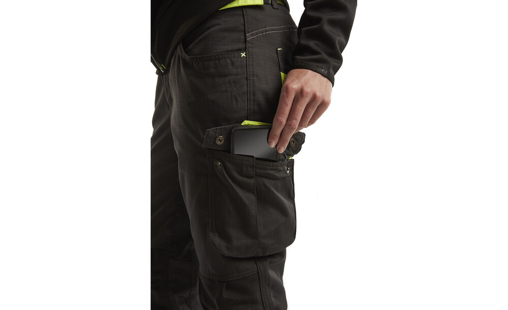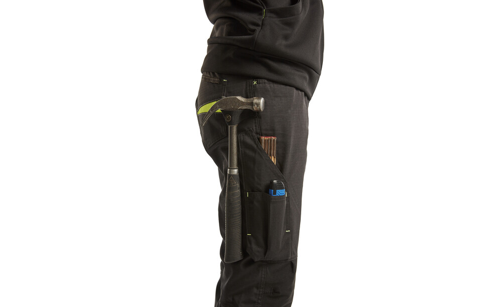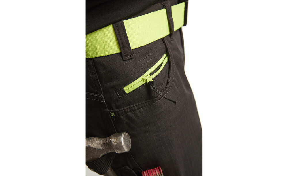 Funktionelle Service Arbeitshose in Damenpassform mit raffinierten Details. Diese Hose ist in Bezug auf Komfort, Anwendung und Aussehen funktionell. Das Ripstop-Material ist strapazierfähig, leicht und robust mit guter Reißfestigkeit. Die elastische Taille und die Stretch-Einsätze an der Wade und an der Innenseite der Oberschenkel bieten hervorragende Bewegungsfreiheit. Die Kniepolstertaschen sind mit CORDURA® Stretch verstärkt. Die Hose ist kratzfrei und hat diskrete Reflexstreifen, eine Handytasche aus Mesh und Taschen für Messer und Zollstock. Die Hosenbeine können am Saum verlängert werden.