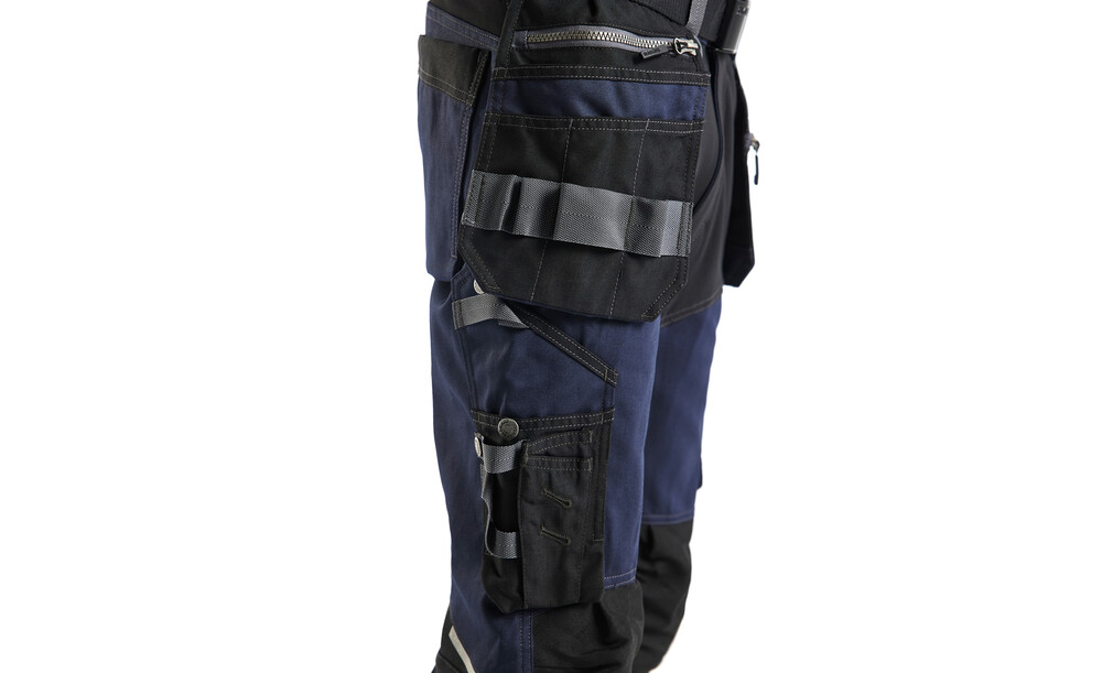 Die traditionelle Handwerker Arbeitshose besteht aus einem Canvas Material. Die Anforderungen an Haltbarkeit, Komfort und praktische Details beeinflussen die Wahl der Arbeitskleidung. Die Bundhose hat eine engere Passform und das Material besteht aus einem Canvas Stoff, der stark aber dennoch leicht und luftig ist. Die Stretch Einsätze über dem Gesäß und an der Taschenöffnung und Kniepolstertaschen aus CORDURA® Stretch Stoff machen die Hose flexibel und perfekt geeignet für die Arbeit mit viel Bewegung. Zusätzlich hat diese Hose viele intelligente und funktionelle Details so wie extra Taschen mit Reißverschlüssen für sicheres Verstauen, eine leicht zugängliche Handytasche aus Stretch Material geeignet für die meisten Handys und diskrete schwarze Reflexdetails an der Wade.