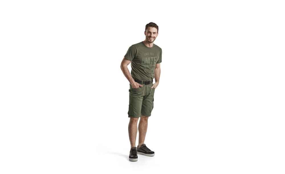 Funktionelle und strapazierfähige Shorts aus Ripstop-Gewebe. Die Shorts haben eine innenliegende Handytasche aus Mesh, eine Zollstocktasche und einen praktischen Messerhalter, wodurch sich das Kleidungsstück für Dienstleistungsberufe eignet. Nicht für schwere Arbeiten empfohlen.