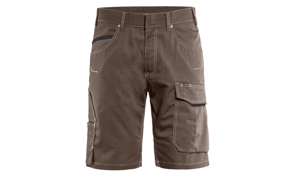 Funktionelle und robuste Shorts aus Ripstop-Gewebe. Diese Shorts hat eine verdeckte Knopfleiste und eine innenliegende Handytasche aus leichtem Netzfutter. Eine Zollstocktasche und ein praktischer Messerhalter machen das Kleidungsstück zu einem passenden Begleiter im Arbeitsalltag.