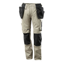 Zweifarbig. Leichte Meterware. Dreifache Kappnähte an den Beinen und im Schritt. Niedrige Taille und formgeschnittener Bund. Hosenbeine sind ergonomisch geformt. Hängetaschen aus CORDURA® Gewebe, verstellbar, mit extra Tasche für Werkzeug. Gürtelschlaufen. D-Ring.Hosenschlitz mit Reißverschluss. Werkzeugschlaufe am Bund. Geräumige Vordertaschen - eine mit leicht zugänglicher Handytasche. Gesäßtaschen, verstärkt. Hammerschlaufe, verstellbar. Schenkeltasche mit Handytasche, Patte und verdeckten Druckknöpfen. Zollstocktasche, verstärkt. Stifttasche. Knietaschen aus super strapazierfähigem CORDURA® (1000 D), höhenregulierbar und mit Patte sowie Eingriff von oben. Reflexeffekte. Wir empfehlen den MASCOT® Waterloo, MASCOT® Grant, MASCOT® Likasi und 20118-915 Knieschutz zu diesem Modell.Getestet nach EN ISO 15797.