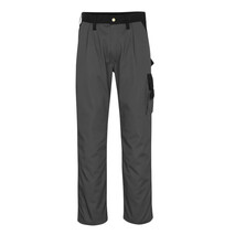 Zweifarbig. Dreifache Kappnähte an den Beinen und im Schritt. Gürtelschlaufen. Hosenschlitz mit Reißverschluss. Vordertaschen. Münztasche. Gesäßtaschen, verstärkt und mit Patte mit Klettverschluss versehen. Hammerschlaufe, verstellbar. Schenkeltaschen, die eine mit Patte und Klettverschluss. Handyschenkeltasche mit Patte und verstellbarem Klettverschluss. Zollstocktasche. Getestet nach EN ISO15797.