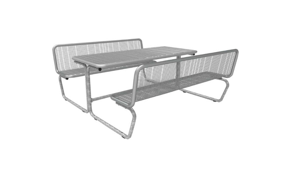 Bank-Tisch-Kombination NEUTRALE PRODUKTLINIE, PALMA, Drahtgitter Nutzbreite 1770mm RAL 9006 mit RückenLehne