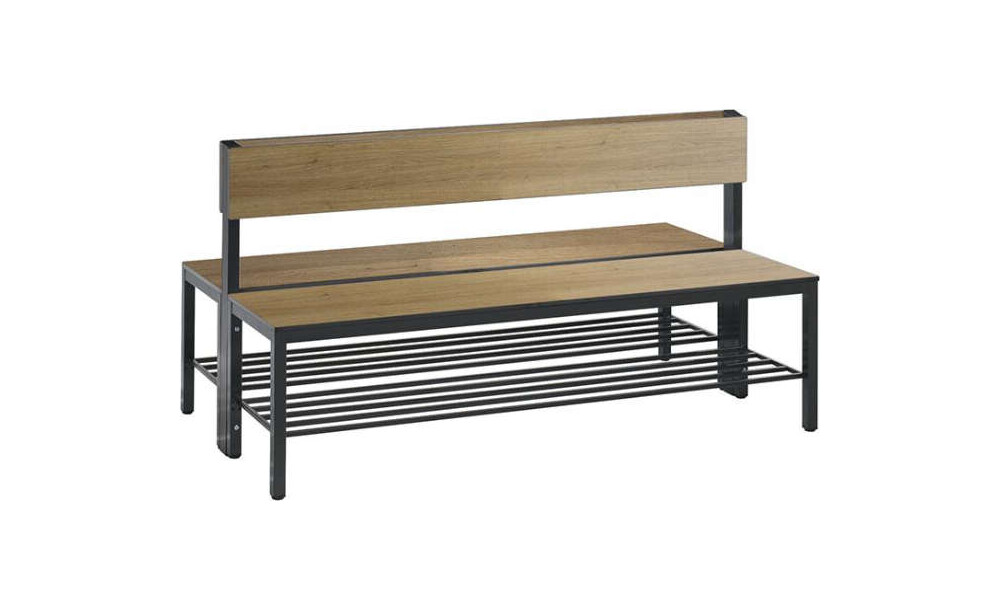 -Doppelseitige Sitzbank, mit Rückenlehne und Schuhrost Diese Sitzbänke verfügen über eine stabile Vierkantrohr-Konstruktion aus Stahl (30x30 mm).