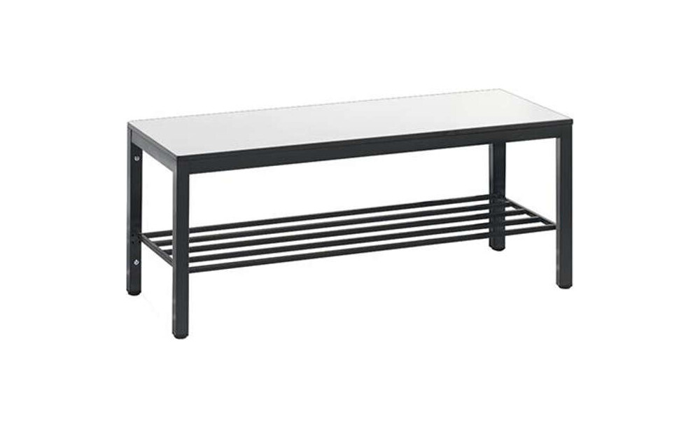 -Sitzbank mit Schuhrost Diese Sitzbänke verfügen über eine stabile Vierkantrohr-Konstruktion aus Stahl (30x30 mm).