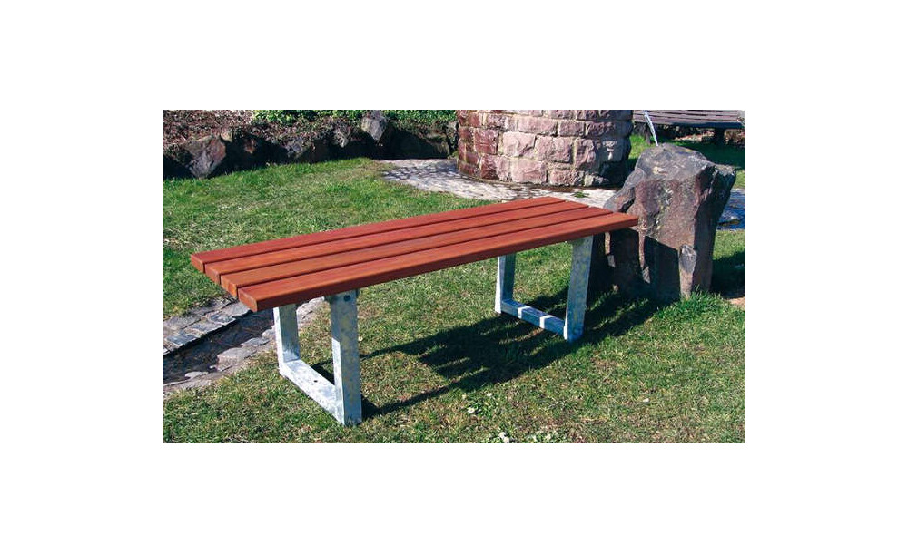 -Hockerbank, Modell 17 Die robuste 4-Sitzer-Ruhebank ohne Rückenlehne ist für den Außenbereich.