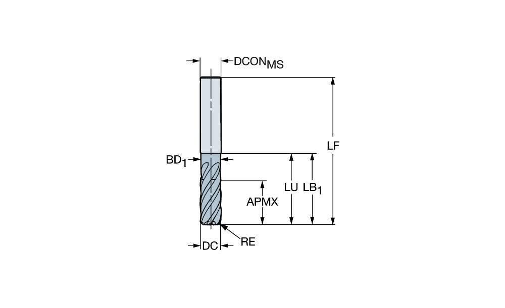 Schaftfräser eckige Form, mit Eckenradius, ohne Zentrumschneide - Metrische Ausführung