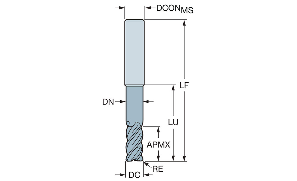 Schaftfräser eckige Form, mit Eckenradius und Zentrumscheide - Metrische Ausführung