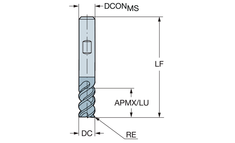 Schaftfräser eckige Form, mit Eckenradius und Zentrumscheide - Metrische Ausführung