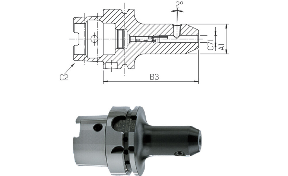 - zum Spannen von Fräsern mit Zylinderschaft und geneigten Spannflächen nach DIN 1835-E und DIN 6535-HE