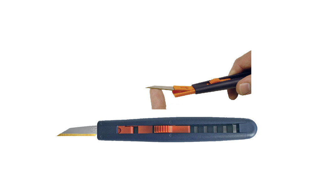 - Drucktastenmechanik zum Ausfahren der Klinge
