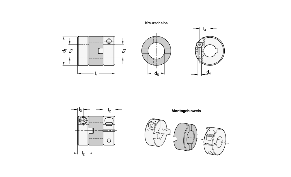Kreuzschieberkupplungen mit Klemmnabe