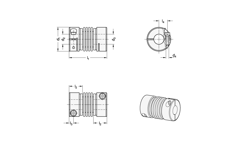 Metallbalgkupplungen GN 2244 übertragen Winkelpositionen und Drehmomente spielfrei und äußerst präzise. Der Metallbalg gleicht dabei Wellenversätze und Lauftoleranzen zuverlässig aus. Durch die Klemmnaben sind Metallbalgkupplungen sehr montagefreundlich.