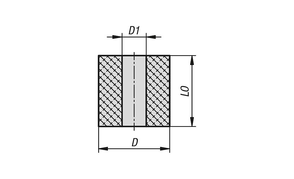 ELASTOMER-FEDER 70 SHORE A LO=80 POLYURETHAN, SCHWARZ, D1=17, D=50