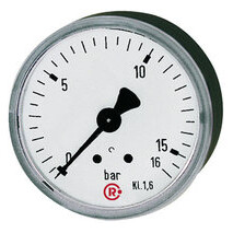 Standardmano., Stahlblechgeh., Einfachskala in bar, Anschluss hinten zentrisch, G 1/8, Güteklasse 1,6, Messber. 0 - 10,0 bar, Ø 40. Rohrfedermanometer in Standardausführung. Geeignet für gasförmige, flüssige, nicht hochviskose und nicht kristallisierende Messstoffe, die Kupferlegierungen nicht angreifen.
