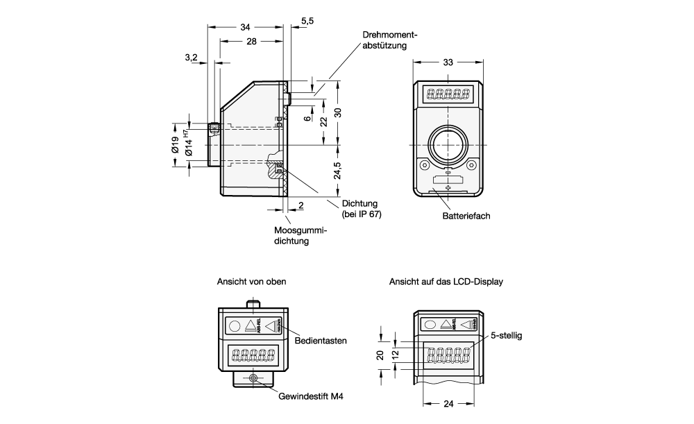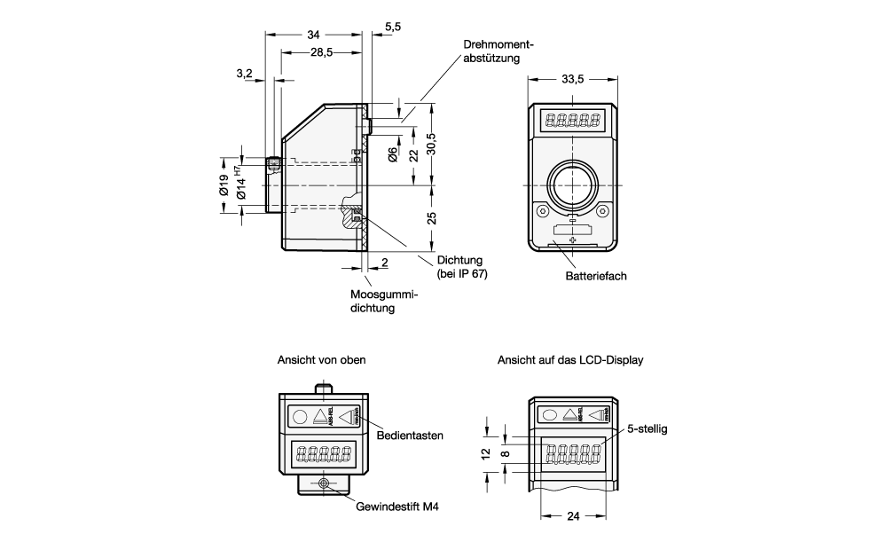 Stellungsanzeiger, 5-stellig, elektronisch, LCD-Display