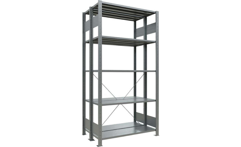 -Doppel-Steck-Grundregal RAL 7035 lichtgrau, Tragkraft 250 kg Dieses Doppel-Regalsystem mit einer „Rücken-an-Rücken-Aufbautechnik” ist zweiseitig nutzbar und nutzt den Raum bestmöglich aus.